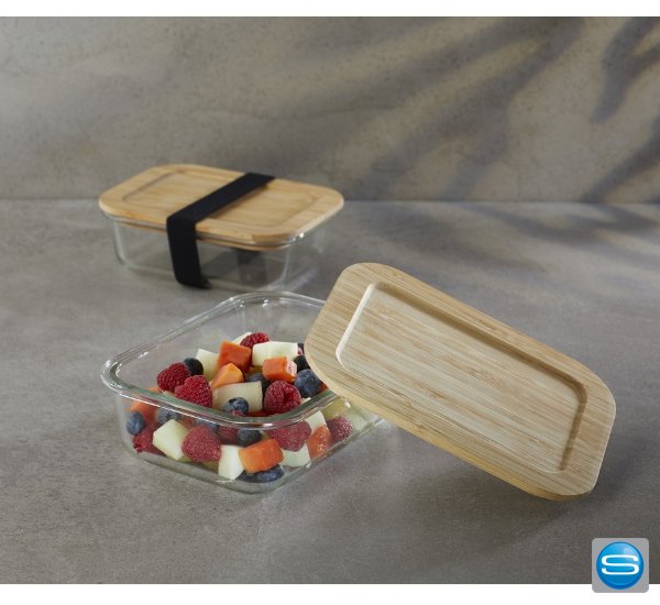 Lunchbox aus Glas und Bambus als Werbeartikel