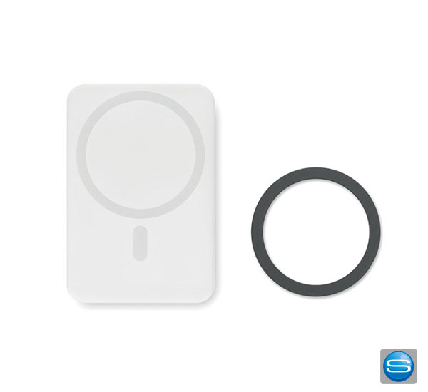 Die magnetische Powerbank 5000 mAh mit kabellosem Ladegerät 15W, lässt sich individuell gestalten. Ausgang: DC 9V/1,1A (15W), ideal zum schnellen Aufladen. Kompatibel mit iPhone® 12 und neueren Modellen. Inklusive magnetischen Metallring zur Unterstützung anderer nicht-magnetischer, wireless aufladbarer Telefone. Ihr Firmenlogo wird mittels Digital Label, Doming, Tampondruck oder Digitaldruck angebracht.