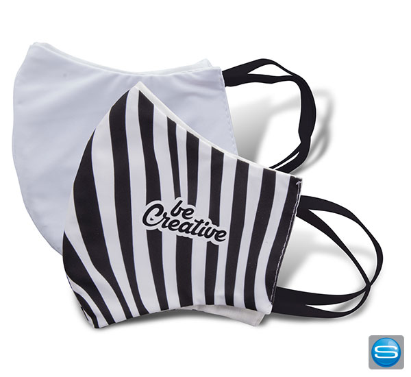 Masken mit schwarzen Bändern und vollflächigem Druck