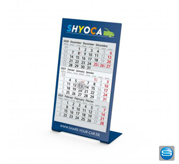 | Werbeanbringung: | 4-c Digitaldruck nach CMYK oder Siebdruck ober- bzw. unterhalb des Kalendarium |