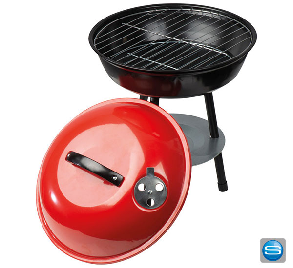 Mobiler Grill für Holzkohle als Werbeträger gravieren