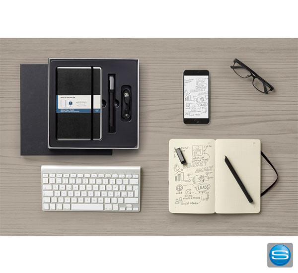 Sie suchen ein Prämiengeschenk für Kunden oder Mitarbeiter? Dann ist das Moleskine Ellipse Smart Schreibset der ideale Werbeträger. Das Moleskine Smart Schreibset Ellipse enthält den Pen + Ellipse-Smartpen und ein großes liniertes Paper Tablet mit speziellem Ncoded-Papier. Schreiben Sie mit der Moleskine Notes App einfach mit Pen + Ellipse auf die Seiten des Paper Tablets, um augenblicklich digitalisierte Notizen zu erhalten, die auf dem Gerät Ihrer Wahl bearbeitet, abgeschrieben, organisiert oder weitergeleitet werden können. Im Lieferumfang enthalten sind: Paper Tablet mit Spezialpapier, entwickelt für die Arbeit mit Pen+ im linierten Layout, Pen+ Ellipse Smartpen, USB-Kabel, um den Smartpen wieder aufzuladen, 1 Tinten-Ersatzmine, Volant XS Starter Journal und Benutzerhandbuch. Das Smart Schreibset Ellipse ist mit allen anderen Moleskine Paper Tablets und Smart Kalendern/Planern kompatibel.