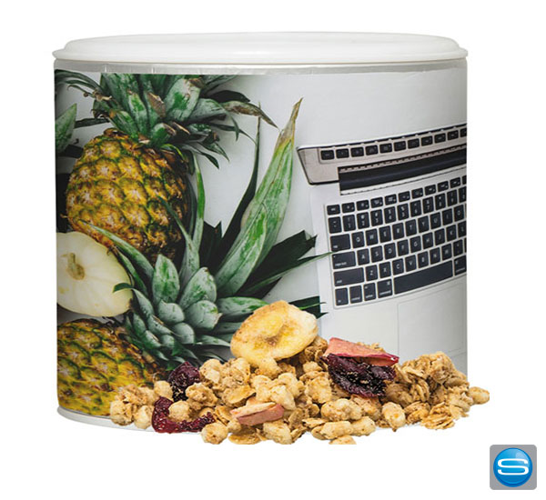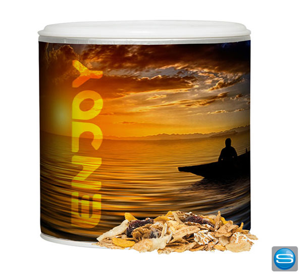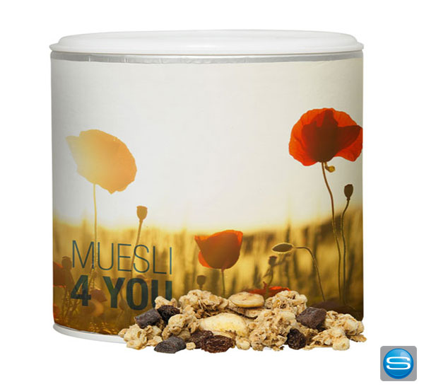 Müsli in individuell bedruckter Dose mit Ihren Logo