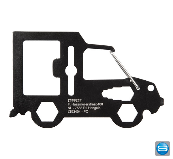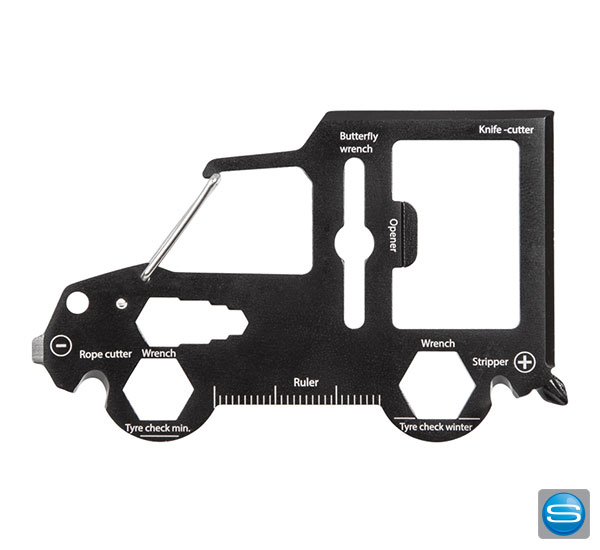 Multifunktionswerkzeug in LKW-Form mit Logo gravieren