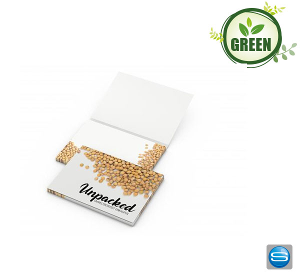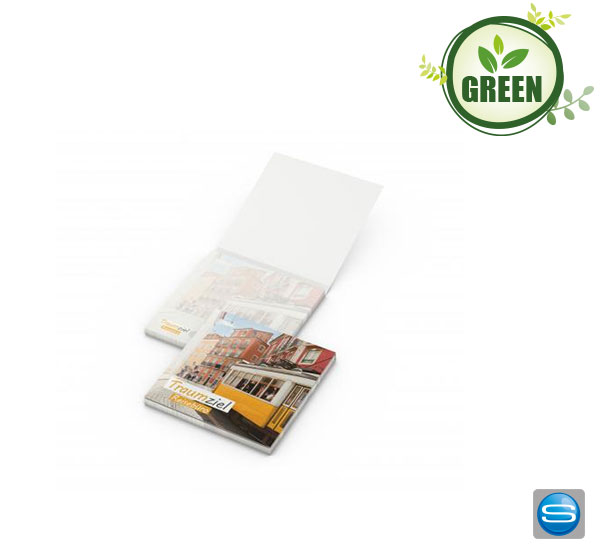 Nachhaltiger Haftnotiz Block mit Umschlag als Werbeartikel