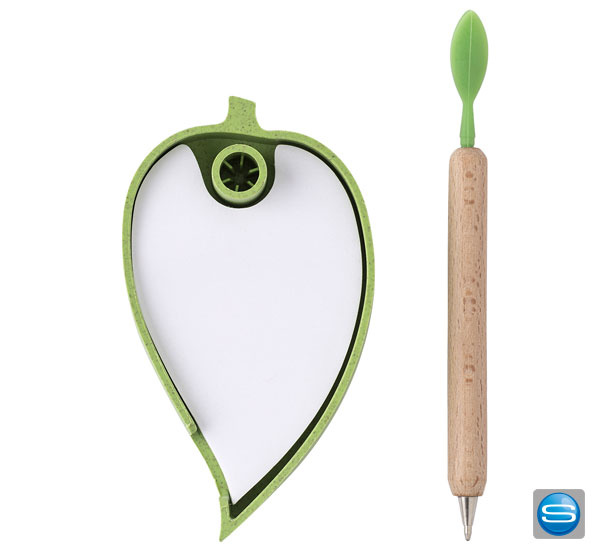 Notiz-Box 'Blatt' mit Rollerball individuell bedrucken