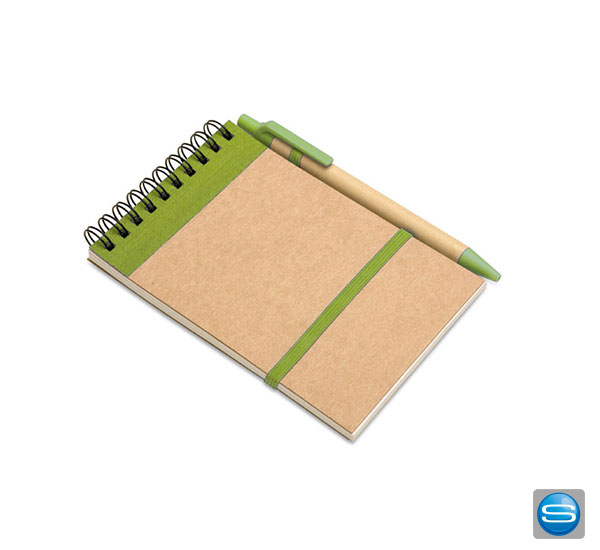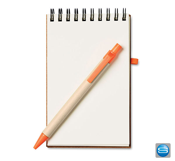 Notizblock aus recyceltem Papier mit Kugelschreiber