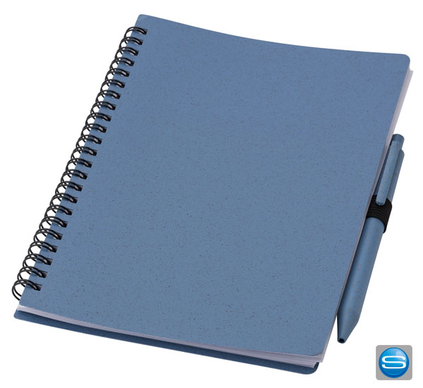 Notizbuch und Kugelschreiber aus Weizenstroh mit Logo bedrucken