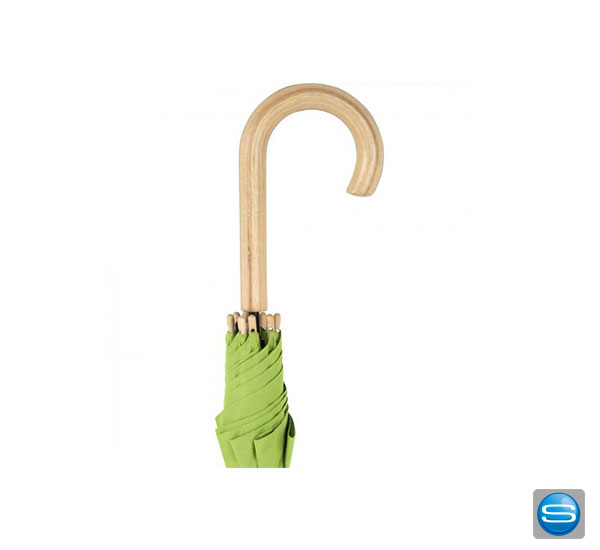 | Material: | Bezug aus recycelten Kunststoffen (100% Polyester- Pongee) und Griff aus Echtholz |