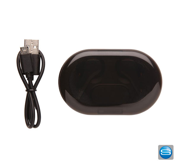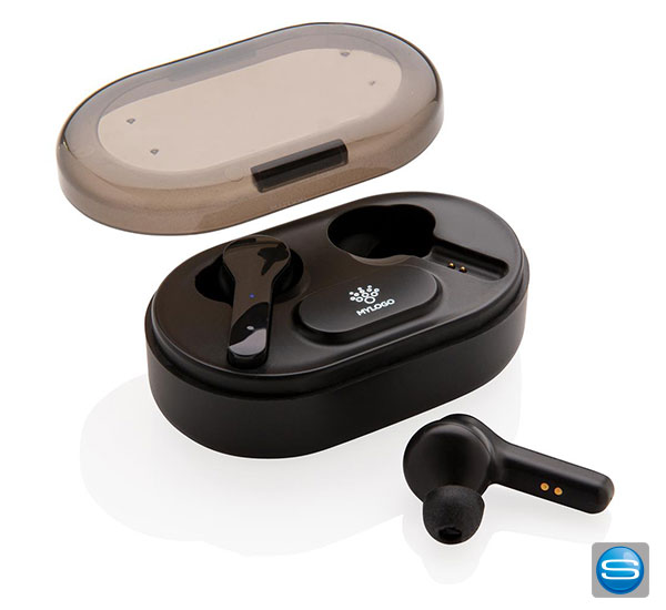 Ohrhörer in Ladebox mit light-up-Logo als Give Away veredeln