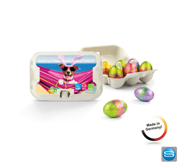 Oster Sixpack - Eierkarton mit Schokoeiern als Präsent zu Ostern