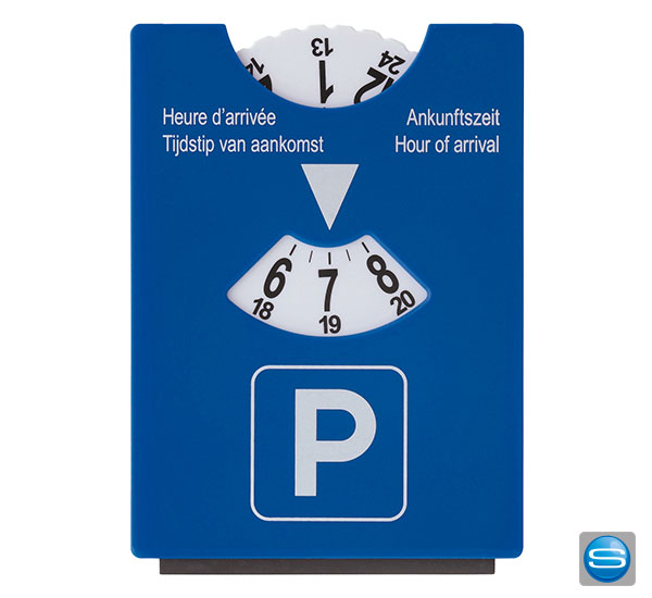 Parkscheibe mit vollflächig bedruckbarer Rückseite als Werbegeschenk