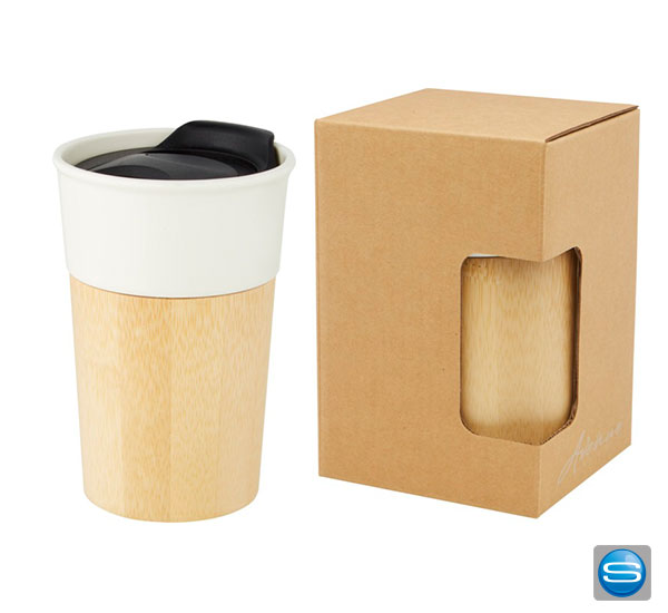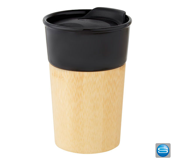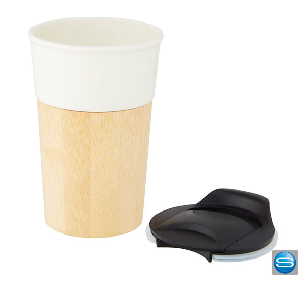 Porzellanbecher mit Bio Bambus Außenseite bedruckbar