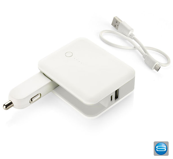 Powerbank mit Auto-Adapter mit Logo bedrucken
