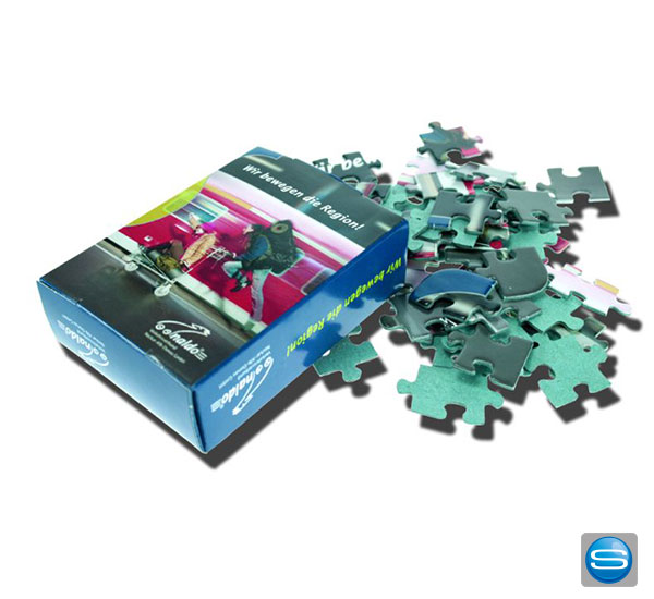 | Werbeanbringung: | 4/0 farbig nach Euro-Skala auf dem Puzzle und der Faltschachtel |