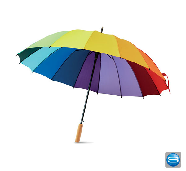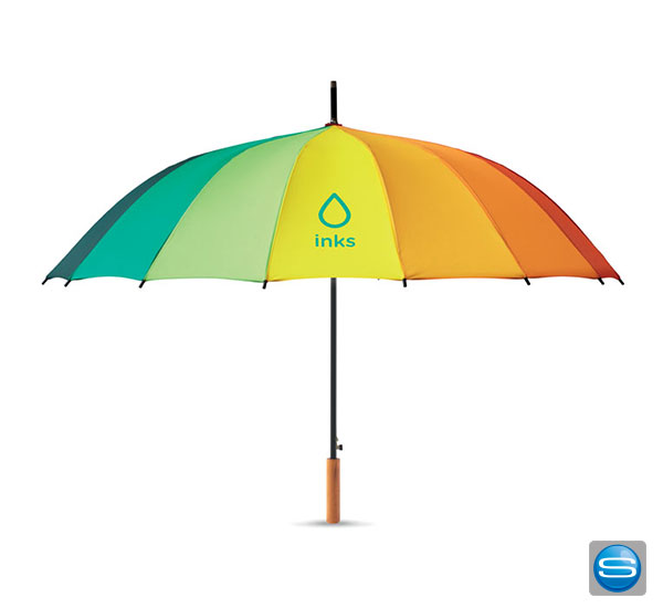 Regenschirm in Regenbogenfarben als Werbeartikel