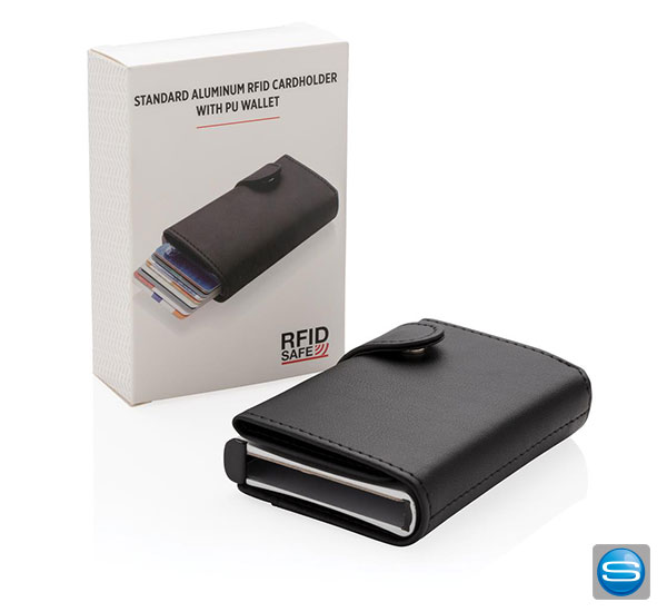 RFID Kartenhalter aus Aluminium mit PU-Börse als Werbegeschenk mit Logo bedrucken