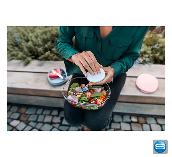 Salatbox mit Besteck und Dressingbox als Give Away mit Logodruck