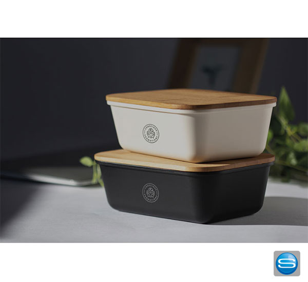Sandwichbox mit einem Deckel aus Bambus mit Logo graviert