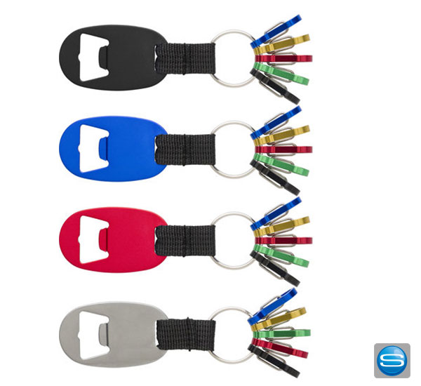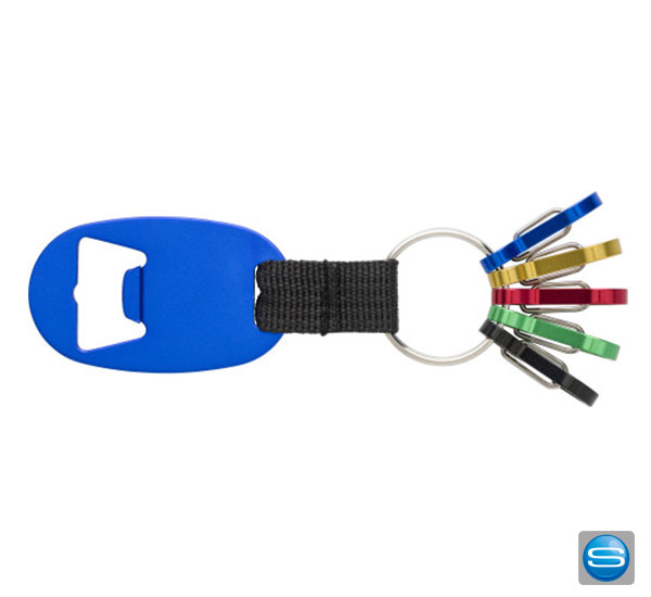 Schlüsselanhänger mit Flaschenöffner und Karabinerhaken als Werbegeschenk bedrucken