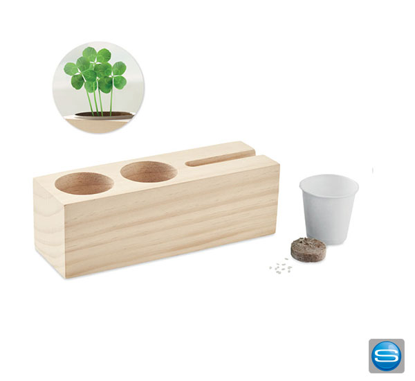 Schreibtisch-Organizer aus Holz mit Pflanze und Ihrem Logo