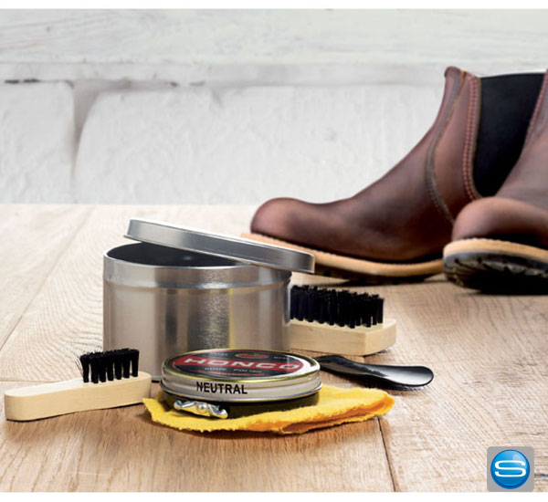 Schuhputzset in schicker Metalldose als praktischer Helfer