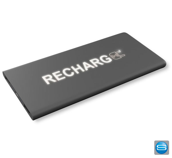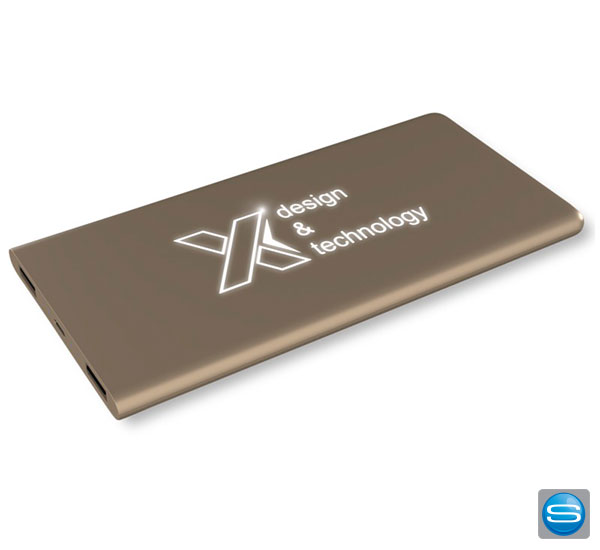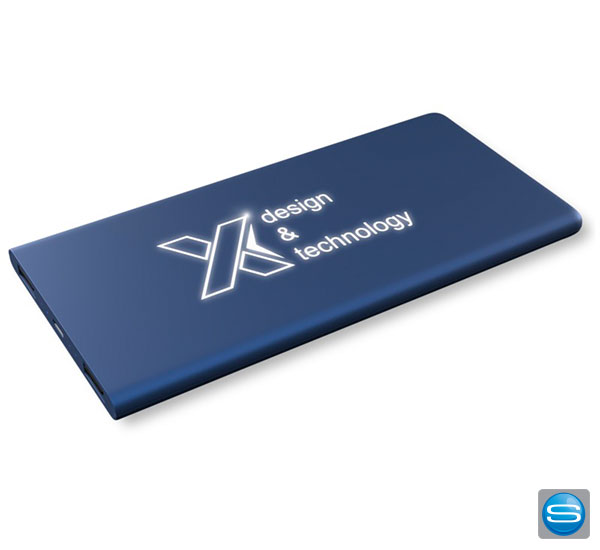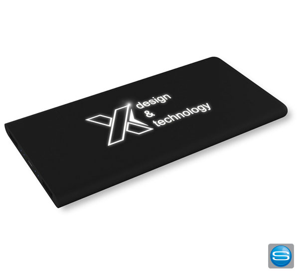 SCX.design Powerbank mit Leuchtlogo als Werbeartikel