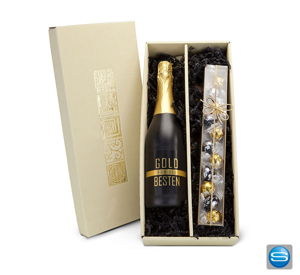 Sekt mit Lindt Lindor Kugeln als Werbegeschenk