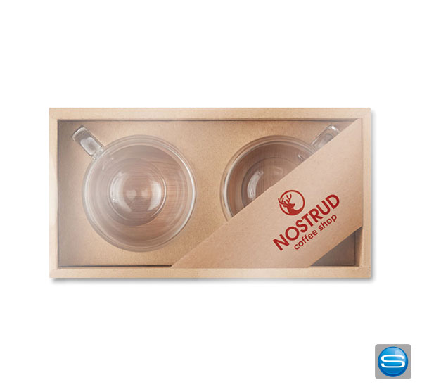 Set mit 2 Espressogläsern und Bambusuntersetzer als Werbemittel mit Logo bedrucken