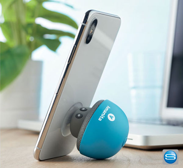 Smartphonehalterung als Bluetooth Lautsprecher mit Logo