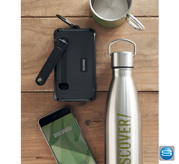 Solar Powerbank mit Ihrer Werbebotschaft bedruckt