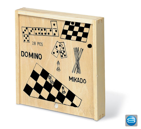 Spielesammlung in einer Holzkiste mit Ihrem Logo