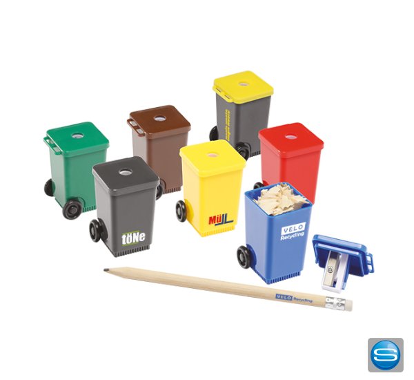 Spitzer Mülltonne als Werbegeschenk mit Logo bedrucken