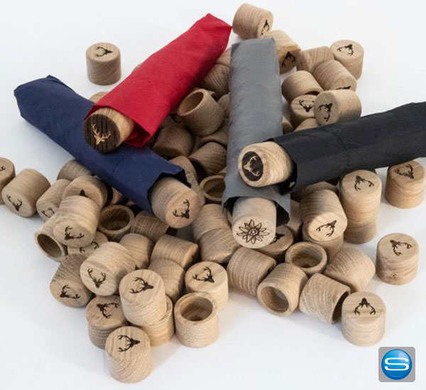 Taschenschirm mit edlem gravierbaren Holzgriff für Ihre Werbung