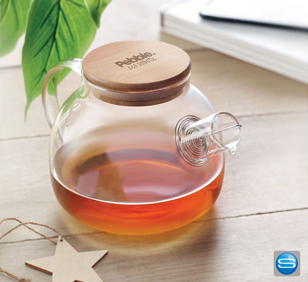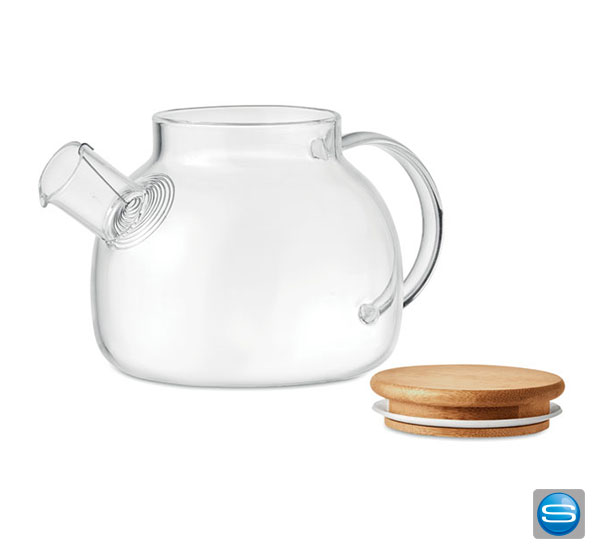 Teekanne aus Borosilikatglas mit Deckel aus Bambus als Giveaway