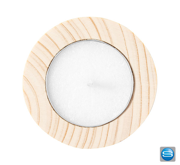 Teelicht im Teelichthalter aus Holz als Werbeartikel