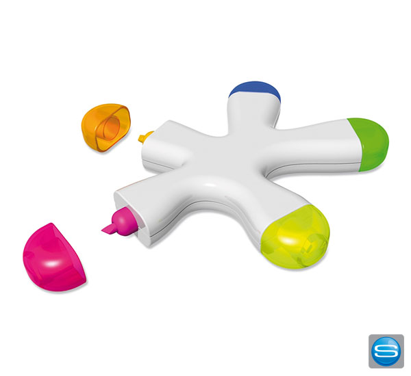 Textmarker mit 5 Farben in Kleksform als Werbegeschenk