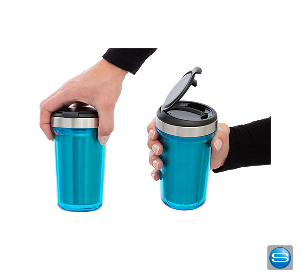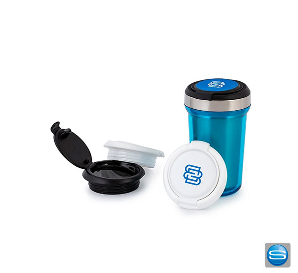 | Werbeanbringung: | Druck auf Außenbecher, Lasergravur auf Metallring, UV-Digitaldruck auf Deckel |