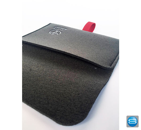 Trendige Mappe aus Filz mit Gummiband als Werbegeschenk