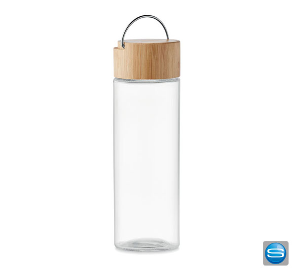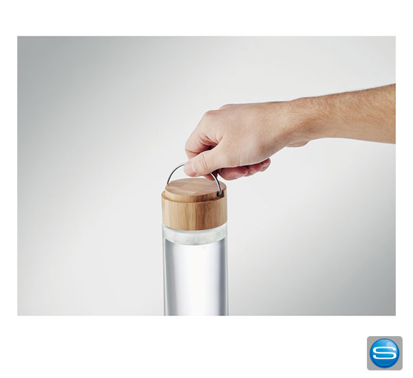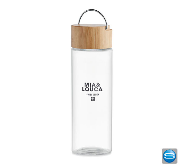 Trinkflasche aus Glas mit Henkel als Werbegeschenk