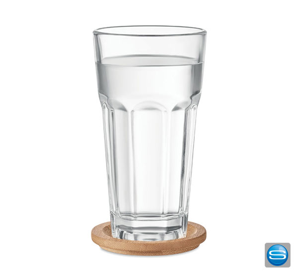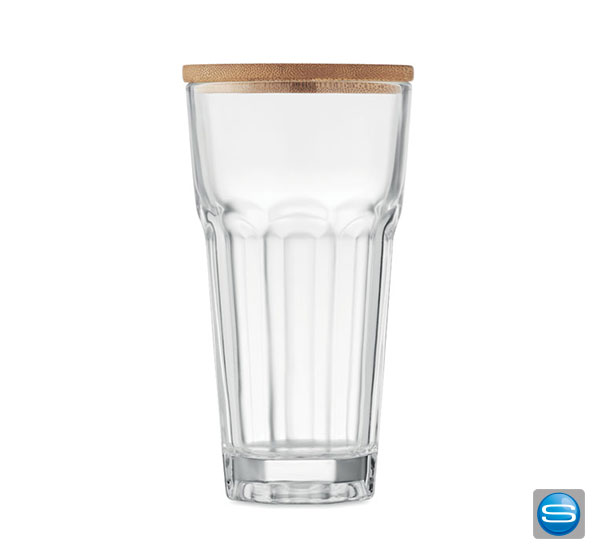 Trinkglas mit Deckel aus Bambus mit Ihrem Logo gravierbar
