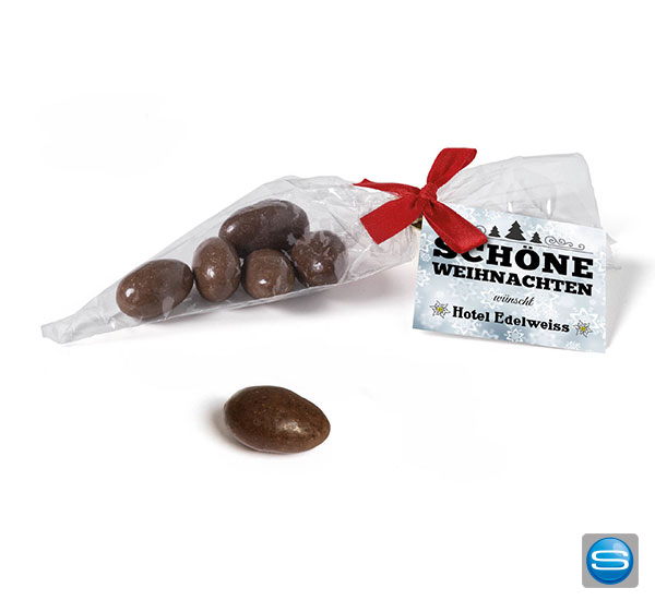 Überzogene Mandeln mit individuell bedruckbarer Werbekarte
