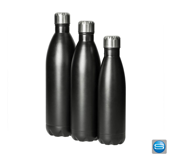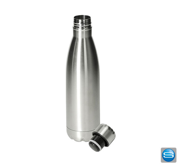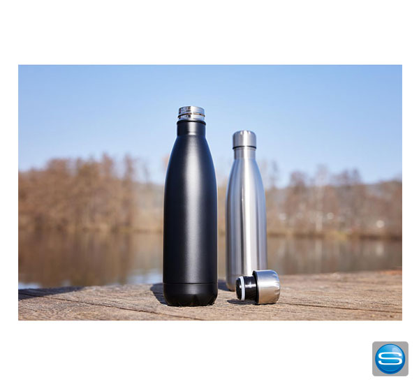 Vakuum Flasche aus Edelstahl doppelwandig als Werbegeschenk mit Logo graviert