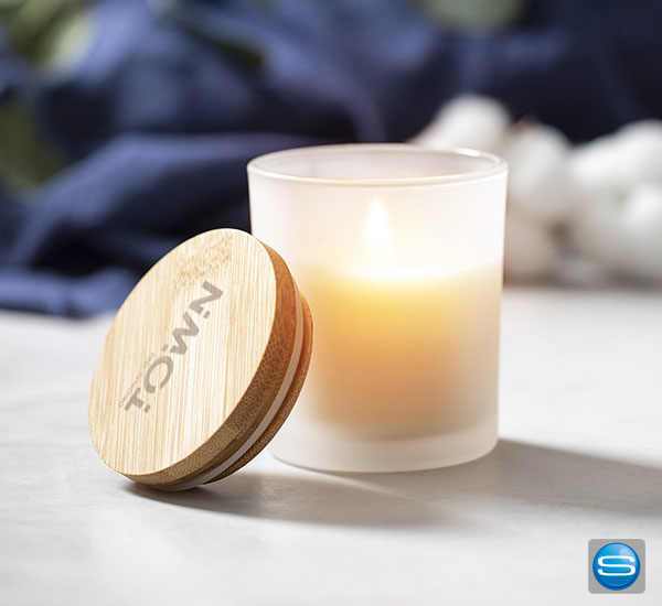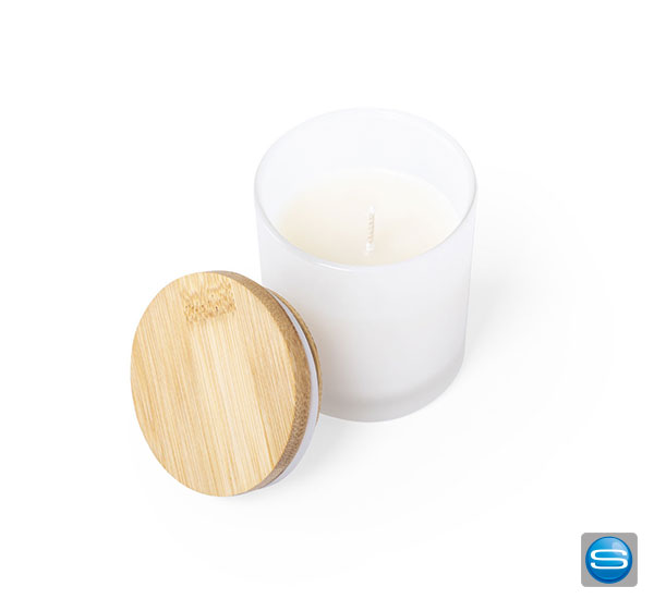 Vanille Duftkerze mit Bambusdeckel individuell bedrucken
