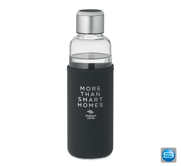 Veredelbare Trinkflasche aus Borosilikatglas mit Trink-Erinnerung