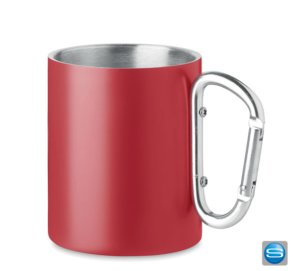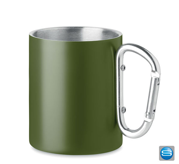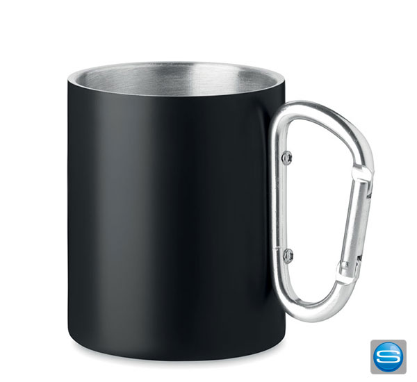 Veredelbarer Trinkbecher mit Karabiner-Henkel als Werbegeschenk