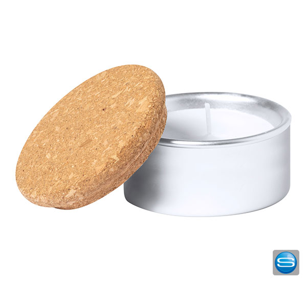 Wachskerze im Aluminiumtiegel mit Deckel als Werbegeschenk