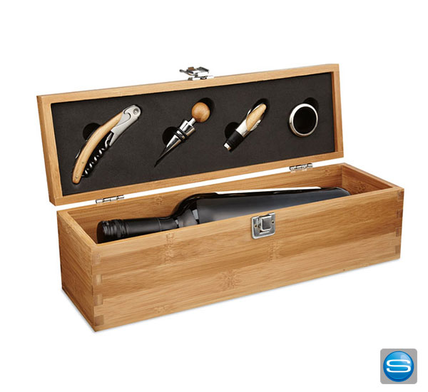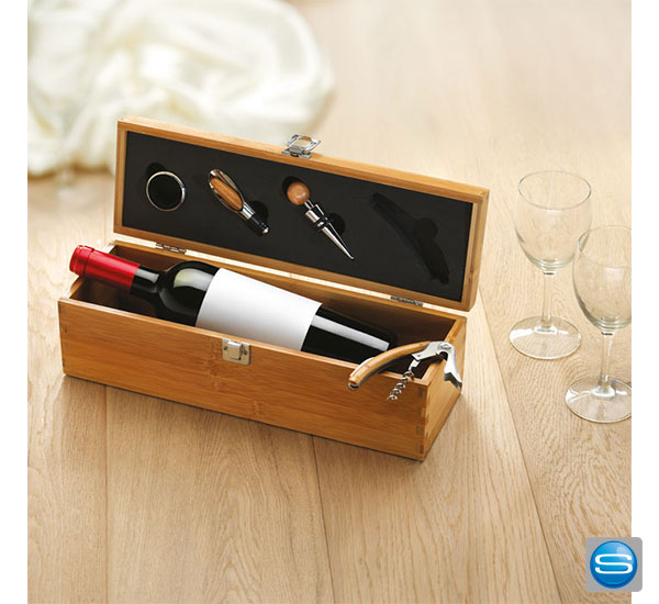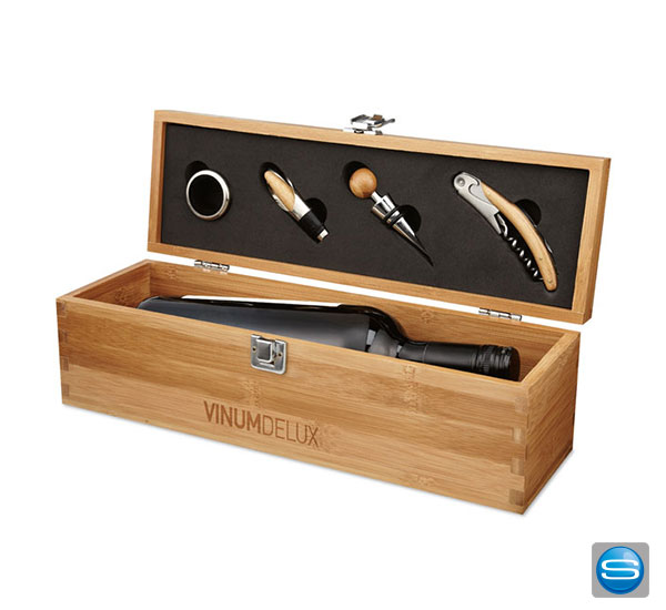 Wein-Set aus Bambus individuell mit Logo bedrucken