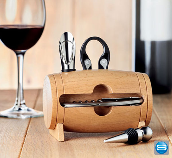 Wein-Set im Holzfass als ausgefallenes Werbegeschenk