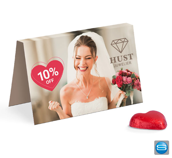 Werbekarte mit Ritter Sport oder Schokoherz als Streuartikel